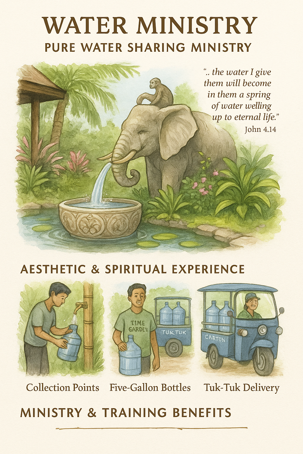 Through Always Serving, Inc. (alwaysserving.com), this vision is becoming reality—step by step, through prayer. Time Garden is more than a resort: it is a refuge of peace, a school of skills, and a gift of water and hope—rooted in Christ.